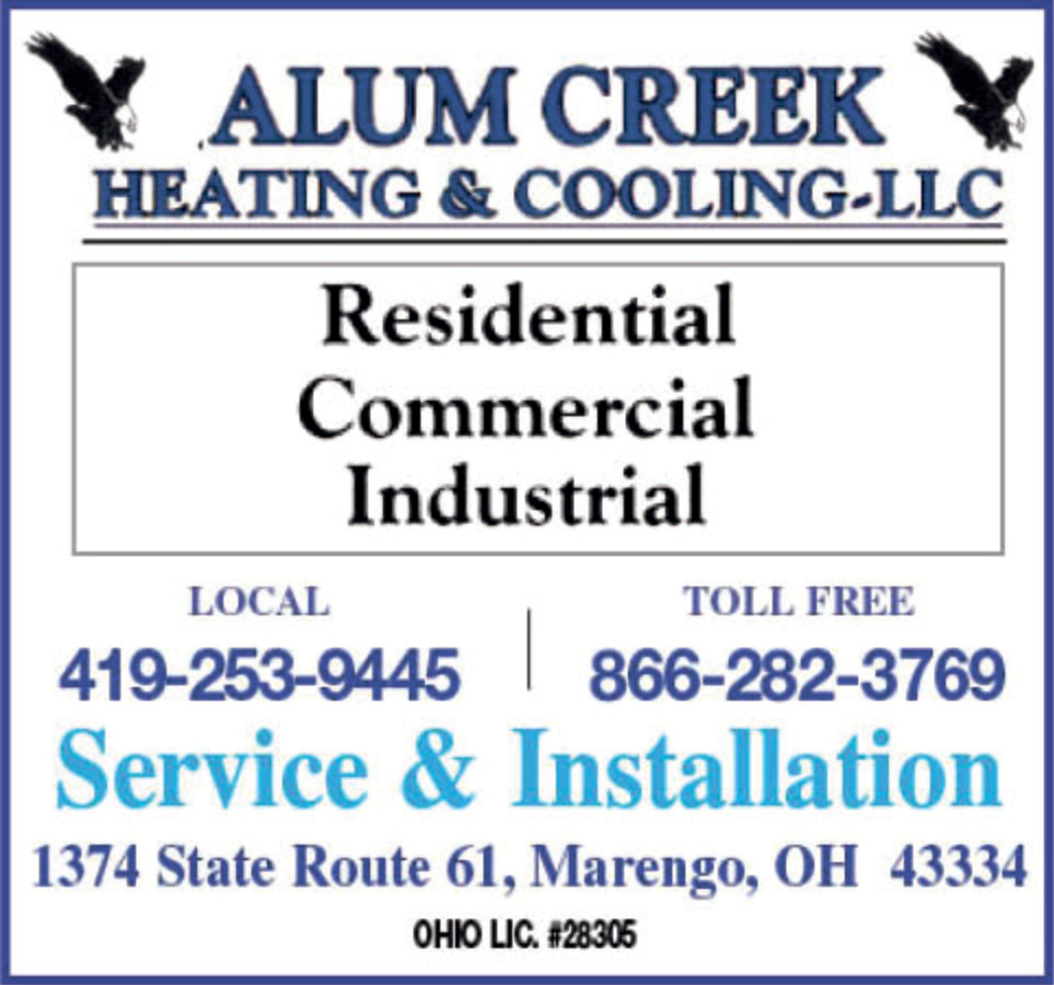Ads for Alum Creek Heating & Cooling LLC in Marengo, OH