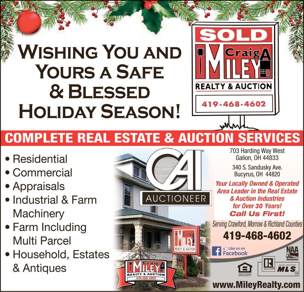 Nov 26, 2025. Craig A Miley Realty & Auction Real Estate Ads from Galion Inquirer