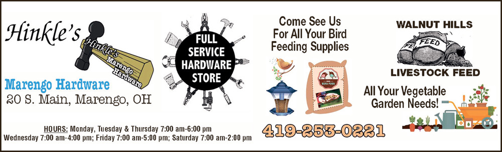 Mar 25, 2026. Hinkle's Marengo Hardware Hardware Ads from Galion Inquirer